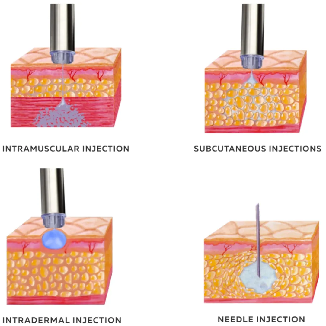 MIT Needle-free technology injectors use CO2 or compressed air to propel a microjet of liquid six times smaller than a 30-gauge needle through the skin. Instead of feeling the piercing pain of the needle, the patient only feels a slight pressure as the propelled liquid passes through the skin.